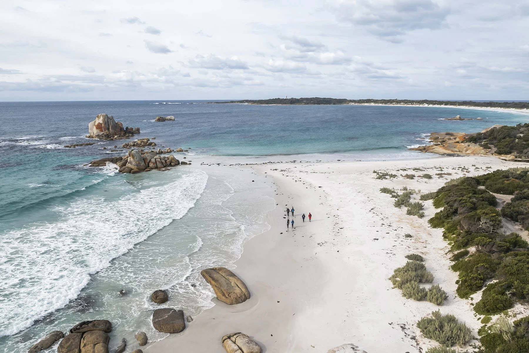 If squeaky white-sand beaches and wild coastline appeal to you, the Bay of Fires is a spectacular reason to lace up. We begin at Boulder Point in Mt William National Park where we journey four hours to semi-permanent tents in the dunes. At our forester camp there is no roughing it, take an ocean dip and return for pinots poured and your meal underway.